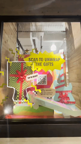 Shoppers scanned a QR code to unlock an animated 3D scene, where they chose from three virtual gifts inspired by Vans families. After scratching to unwrap it, they revealed a 3D display reflecting that family's style, complete with a holiday message. Users could strum Muna's guitar, land tricks on Bottom Feeder's skateboard, or sway Bob Baker's marionette.
